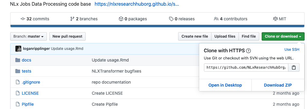 The workflow that I would recommend begins with the creation of a version controlled Project. To do this, you should first go to the NLx Research Hub GitHub repository and copy the provided link to clone the repository.