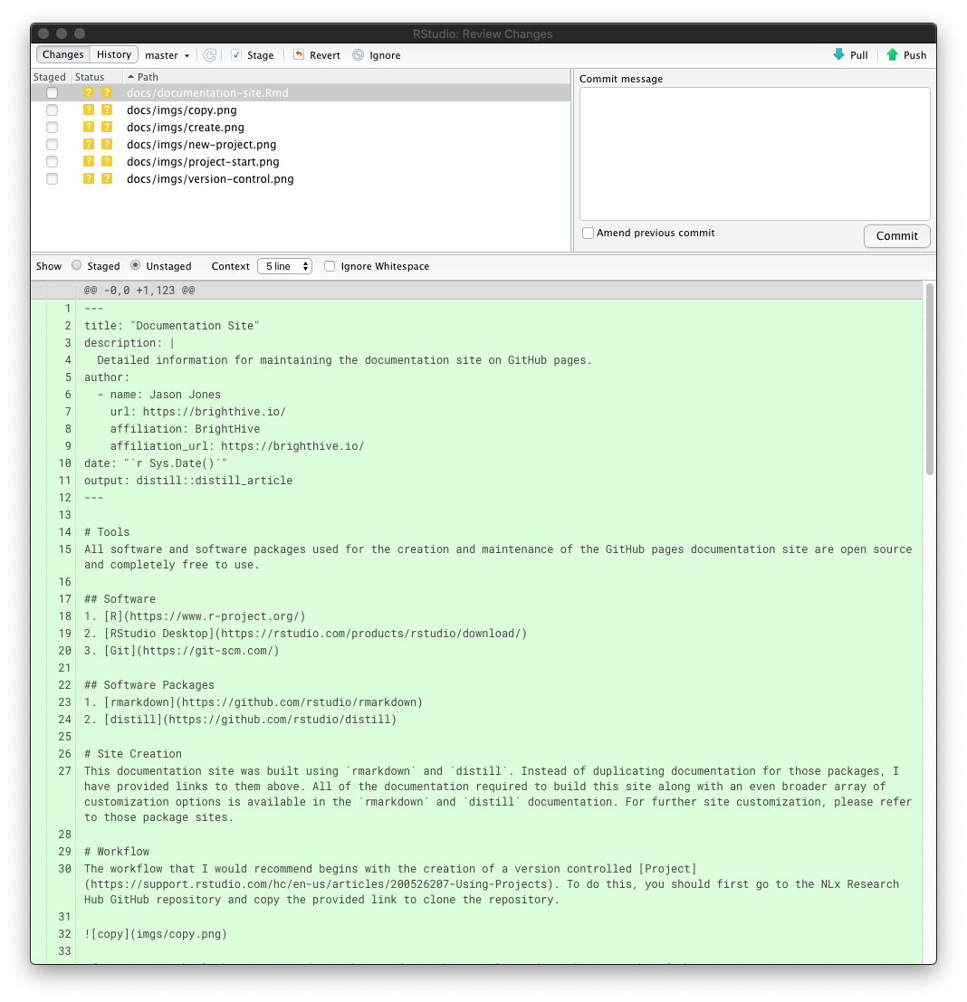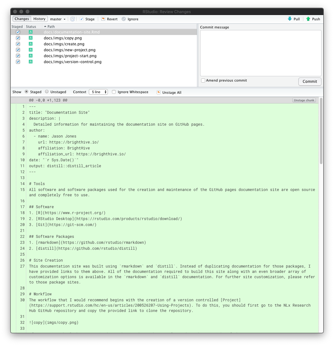 The documentation site is all contained within the docs folder of the repository. If you would like to make changes, please only open and edit files that end in .Rmd